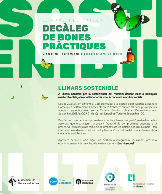 Per reforçar aquest model, l’Ajuntament impulsa eines de sensibilització i corresponsabilitat adreçades tant a la ciutadania com a les persones visitants. Entre elles destaca el Decàleg de bones pràctiques, elaborat en col·laboració amb agents públics i privats del territori, que promou una manera de gaudir de Llinars coherent amb els valors de respecte, equilibri i cura del medi.