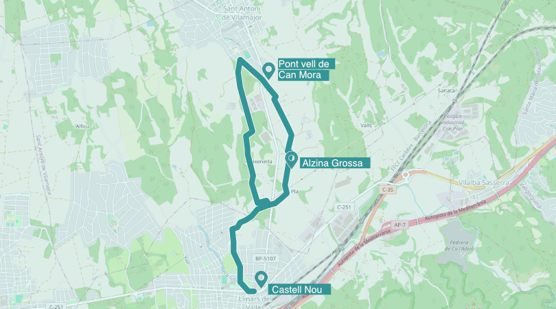 El recorregut passa pel Pont Vell de Can Mora, la Bassa de Can Record i l’Alzina Grossa.