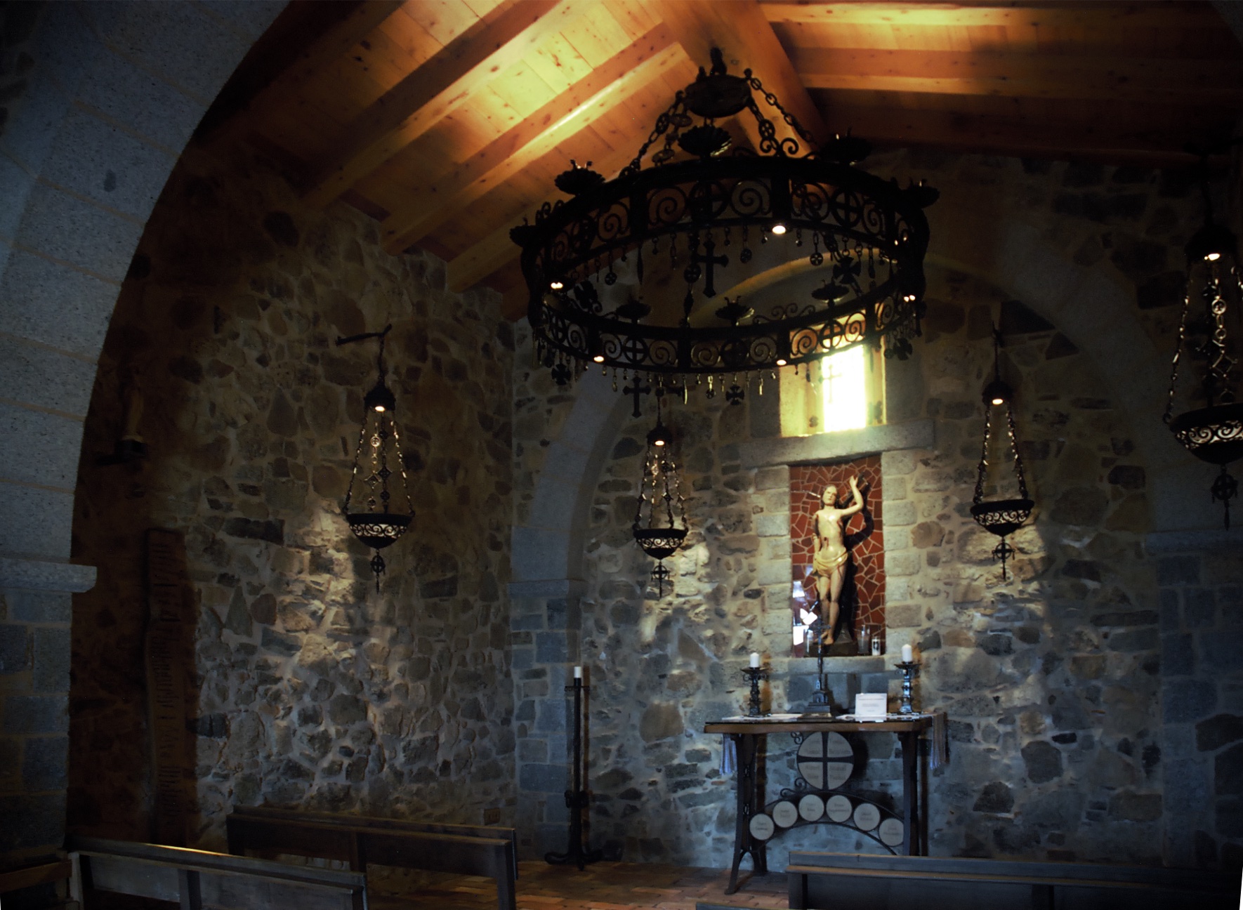 L’interior és senzill i acollidor, pensat per a trobades i celebracions. Tot i que no conserva elements originals d’època, l’espai manté l’esperit de les ermites rurals de muntanya, on el silenci, la llum i el paisatge són part essencial de l’experiència.