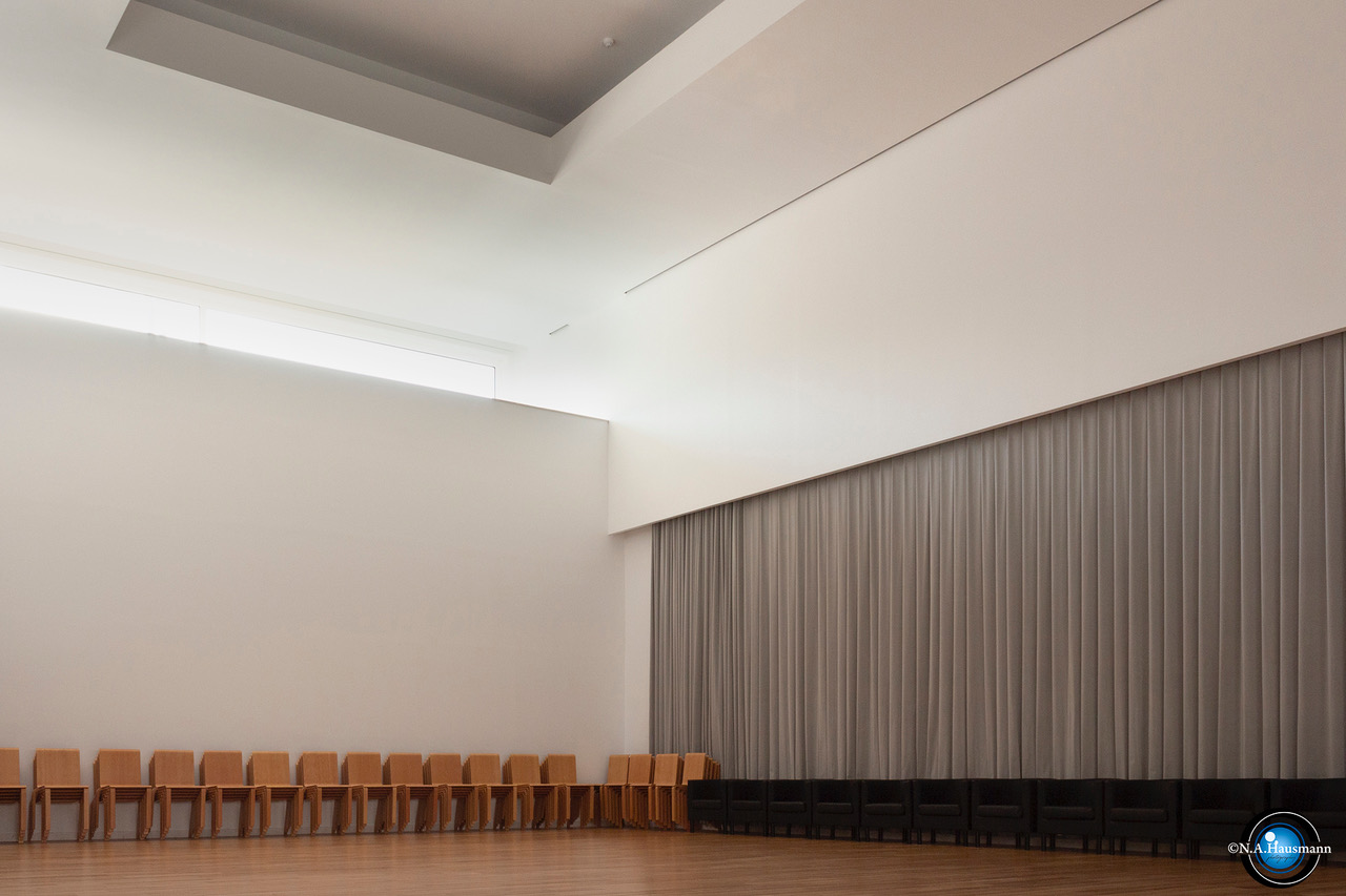 L’edifici, obra de l’arquitecte Álvaro Siza —Premi Pritzker d’Arquitectura—, és una peça integrada en el paisatge, funcional i elegant, que destaca per la seva relació amb la llum natural, les proporcions equilibrades i els volums nets. Disposa d’una sala principal per a gairebé 300 persones, espais polivalents i sales més petites per a assajos o actes informals. Tot l’equipament és accessible per a persones amb mobilitat reduïda i compta amb aparcament gratuït.